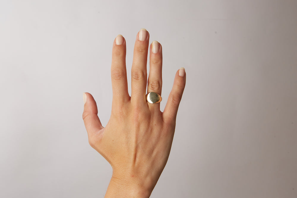 The Elliot Signet is available in sterling silver and 14K gold filled.