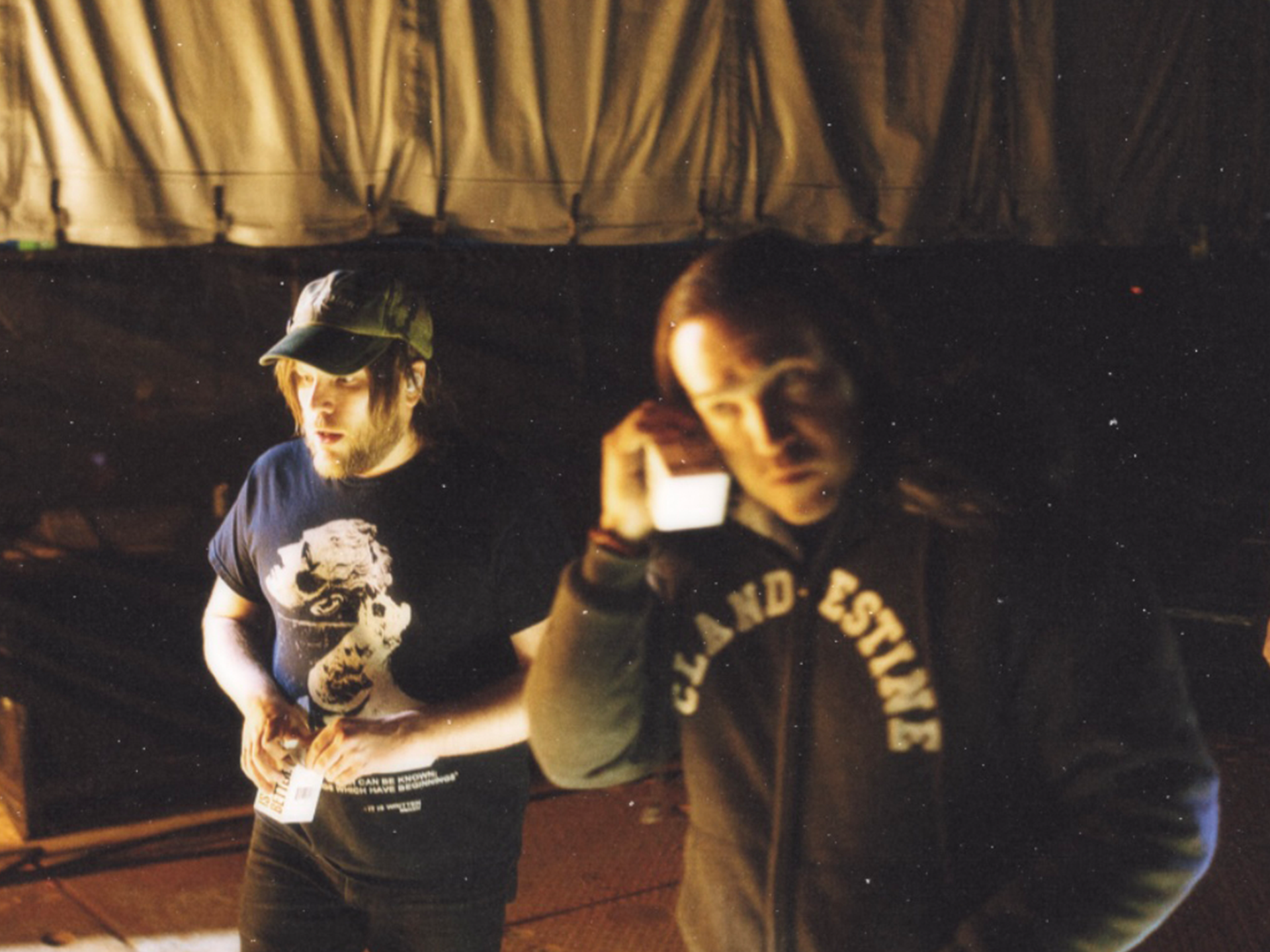 Grey zip up hoodie featuring black zipper, white fluffy inner lining, removable fur collar, "Clandestine" patch lettering on the front and bat logo patch on the back.