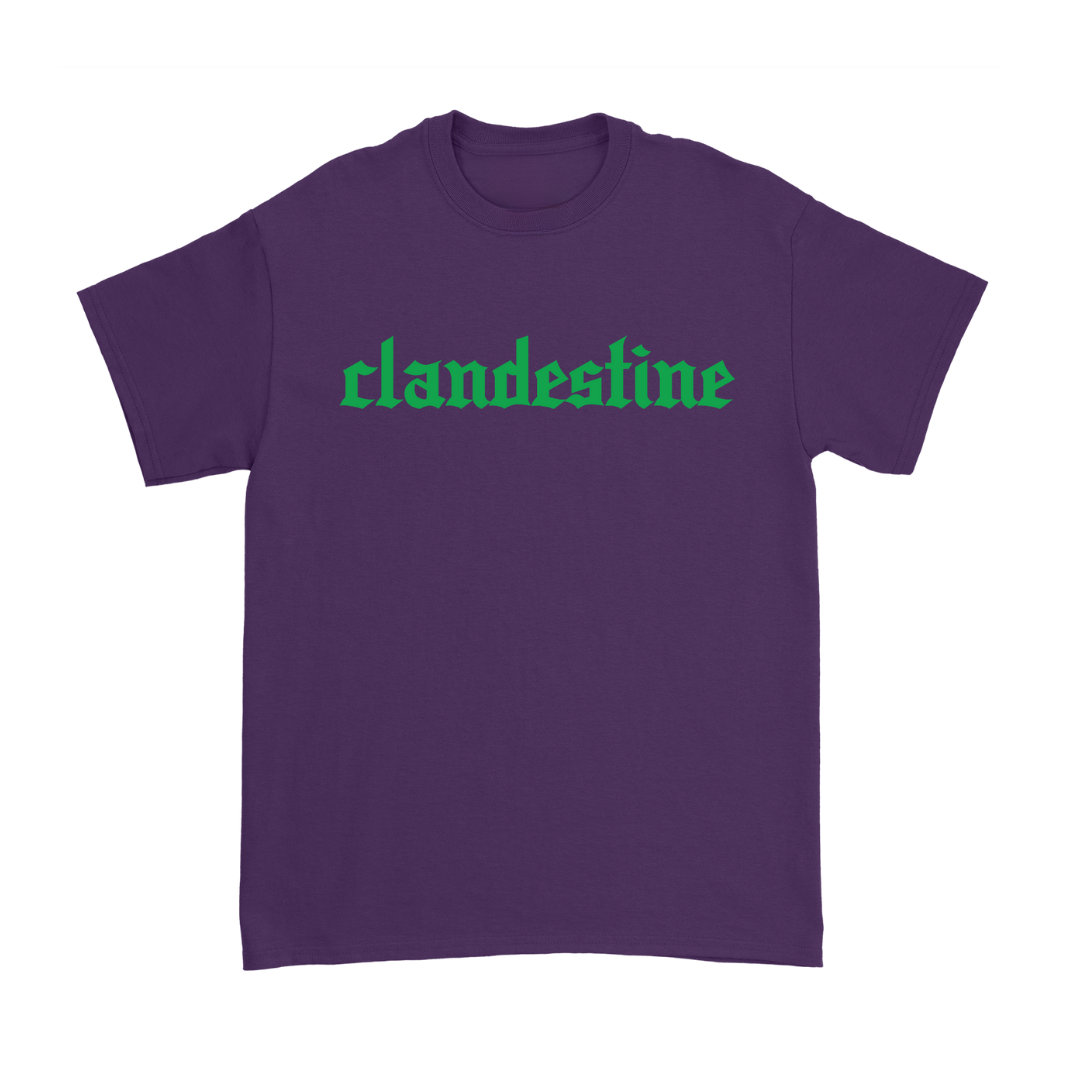 100% cotton unisex t-shirt with a classic fit. "Clandestine" on front and "one last chance for true love" design on back.